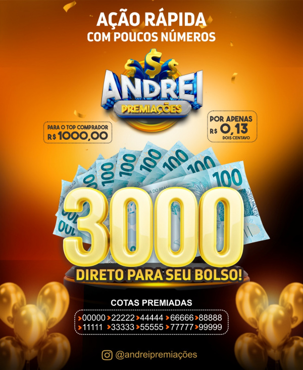 Quem comprar mais cotas, 1º lugar ganha: R$1000